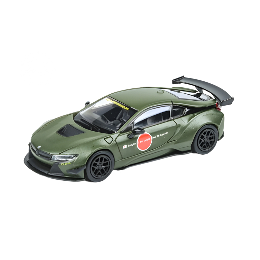 Make your neighbors jealous with this amazing sports car from Paragon! This BMW i8 Zero Liberty Walk Hardtop is a 1/64 scale model replica. It comes in green and features real rubber tires, metal body and chassis, detailed exterior, comes in a hard plastic case. It's a fantastic selection for any sports car collection, and ideal for faithful BMW lovers!