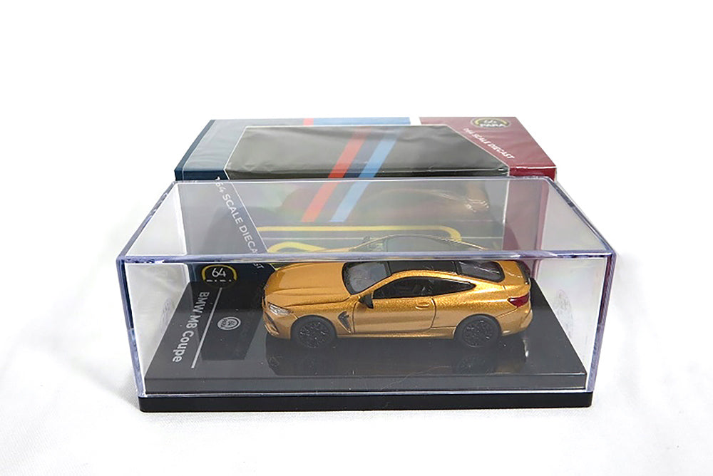 Enjoy this awesome sports car from Paragon! This BMW M8 Coupe is a 1/64 scale model replica. It comes in gold and features real rubber tires, detailed exterior, metal body and chassis, comes in a hard plastic case. It's a superb addition for any sports car collection, and wonderful for loyal BMW aficionados!
