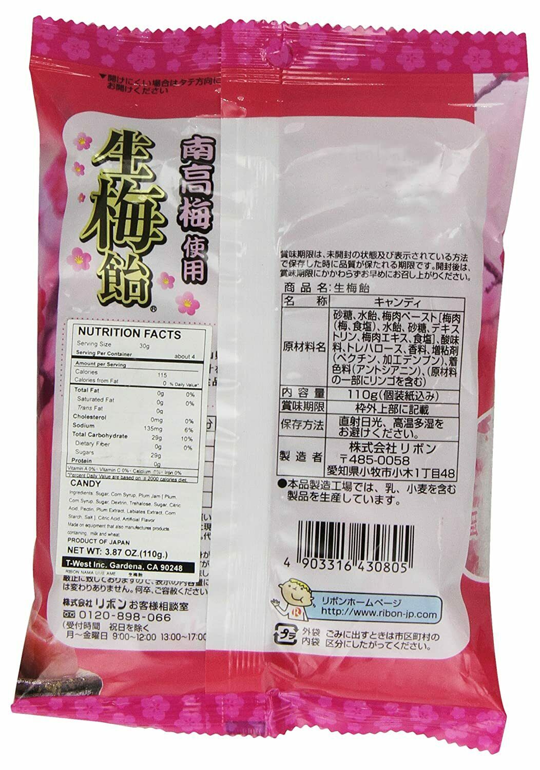 Ribon Nama Ume Ame Hard Candy Sweet & Sour Ume Plum
